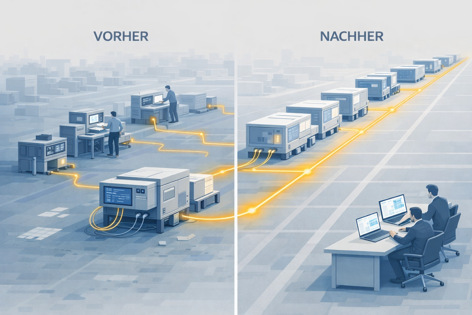 Unsere Erfahrung aus vergleichbaren Projekten zeigt konsistente Effekte. Die Zeit von der Beauftragung bis zum produktiven System verkürzt sich, weil qualifizierte Sub-Systeme reibungslos integriert werden können. Standardisierte Prüfungen senken Kosten und stabilisieren den Durchsatz. Sie reduzieren zudem Risiken, weil Ergebnisse reproduzierbar und nicht von individuellen Bewertungen abhängig sind. Die kontinuierliche Datenerfassung bleibt über den gesamten Lebenszyklus erhalten – auch bei einem Weiterverkauf der Anlage. So werden Anlagenzustände nachvollziehbar dokumentiert, Wartung planbarer und Investitionen langfristig abgesichert. Second-Life-Konzepte oder ein strukturierter Gebrauchtmaschinenhandel werden dadurch erst möglich. Die Vergleichbarkeit zwischen Systemen schafft zudem eine objektive Grundlage für Lieferanten- und Investitionsentscheidungen.