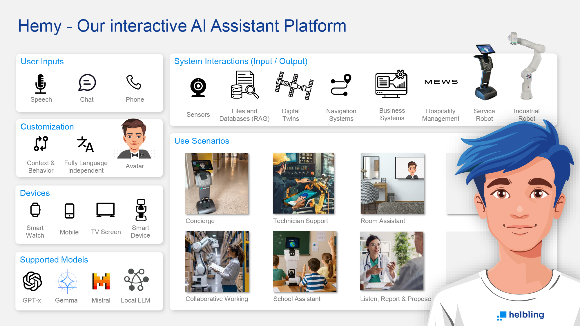 To enable this, Helbling has developed a framework for interactive AI assistants that can be seamlessly applied across industries, devices, and customer systems. The framework is designed with such flexibility that the avatar can be deployed with minimal effort on a wide range of devices including tablets, smartphones, smartwatches, or smart TVs. It can also be adapted to industry-specific processes, whether in tourism, retail environments, healthcare, or publicly accessible areas in industry and public administration as a mobile and dynamic information terminal. Thanks to seamless integration into existing customer systems, the solution helps make operations more efficient, enhance service quality, and strategically relieve staff.